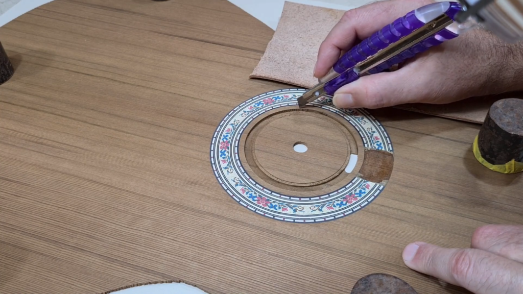 Defina o posicionamento e formato da roseta, elemento decorativo e funcional do instrumento